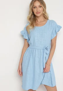 Jasnoniebieska Sukienka Ozdobiona Falbankami i Paskiem Izulira