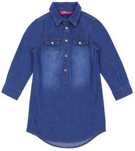 Jeansowa, niebieska, koszulowa sukienka z kołnierzykiem. Sukienka na długi rękaw z mankietami na zatrzaski. Z przodu dwie kieszonki oraz zapięcie na zatrzask...