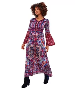 Joe Browns Damska sukienka maxi z nadrukiem w stylu boho z guzikami, fioletowa, 16, Fioletowy, 42