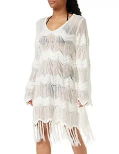 Joe Browns Damska sukienka plażowa z frędzlami, dekolt w serek, z długim rękawem, rozmiar L (16-18), biała, biały, M
