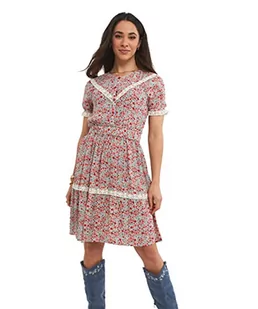 Joe Browns Damska sukienka w stylu retro z krótkim rękawem ditsy w kwiaty na co dzień, czerwona, 6