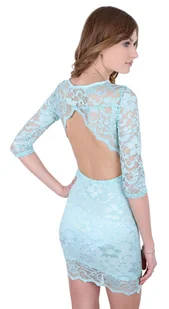 John Zack koronkowa miętowa sukienka mini bez pleców M