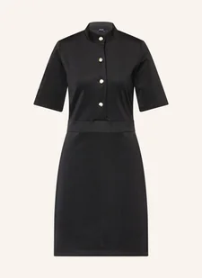 Krótkie rękawy. Krój dopasowany do ciała. Rozkloszowany krój spódnicy. Stójka. Detal z marką. Jednolity kolor. Matowe wykończenie. Boczne kieszenie wpuszczane. Krótka listwa guzikowa. Gładki materiał. Z materiału scuba