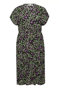 Kaffe Curve Plus Size Damska sukienka midi krótkie rękawy dekolt luźny krój, Czarny/Zielony/Fioletowy Kwiat, 48/du?y rozmiar