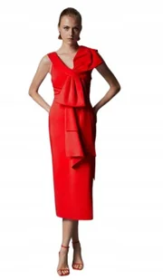 KAREN MILLEN CZERWONA SUKIENKA MIDI Z DEKOLTEM SEREK I KOKARDĄ 38 B1C