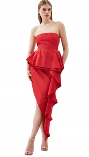KAREN MILLEN CZERWONA SUKIENKA Z FALBANĄ I ASYMETRYCZNYM DOŁEM 36 B1C