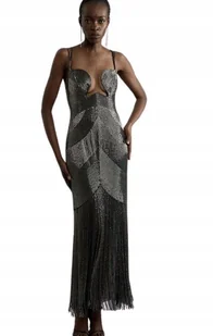 KAREN MILLEN PETITE SREBRNA SUKIENKA MAXI Z FRĘDZLAMI 40 B1C