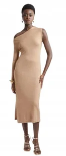 KAREN MILLEN PETITE SUKIENKA MIDI Z KASZMIREM Z JEDNYM RĘKAWEM XS B1C