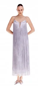 KAREN MILLEN SREBRNA SUKIENKA MIDI Z FRĘDZLAMI Opis Produktu Marka karen millen Kolor srebrny Skład 100%Poliester Metka papierowa Tak Metka wewnętrzna Tak Ro...