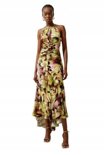 KAREN MILLEN SUKIENKA MIDI HALTER Z PRINTEM I MARSZCZENIAMI 38 B1C