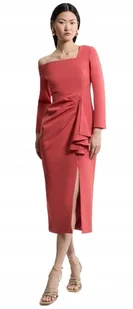 KAREN MILLEN SUKIENKA MIDI Z FALBANĄ NA RAMIENIU DLA NISKICH Opis Produktu Marka KAREN MILLEN Kolor czerwony Skład 89% poliester, 11% elastan Metka papierowa...