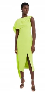 KAREN MILLEN ZIELONA SUKIENKA MIDI Z ASYMETRYCZNĄ NAKŁADKĄ 40 B1C