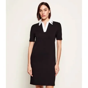 KARL LAGERFELD Damska sukienka w stylu collared Shift z kontrastującym rękawem, czarny, 34 PL