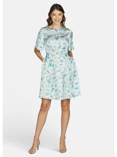 Sukienka w kolorze turkusowym - z poliestru pochodzącego z recyklingu - dekolt: okrągły - zapięcie: suwak na plecach - krój rękawów: motylek - kieszenie: wpuszczane - krój: litera A - wzór: na całości