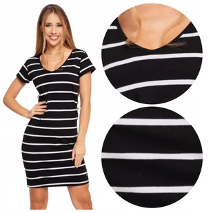 Kobieca Elegancka Czarna SUKIENKA LETNIA Tuba Damska w Paski MORAJ r. S