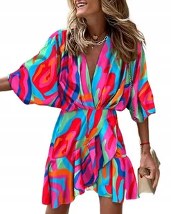 Kobieca Elegancka Sukienka Rękawy Nietoperza Modna Falbany Kolorowa L - Empik