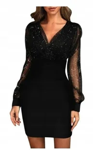 KOBIECA ELEGANCKA SUKIENKA WIECZOROWA CZARNA XL