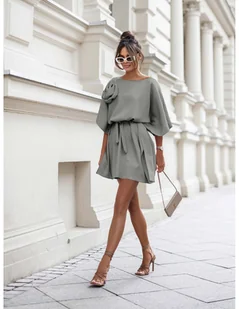 Kobieca sukienka nietoperz z różą BRIA - szara