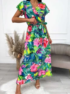 KolorowaSukienka Maxi wRoślinny Wzór