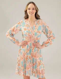 KOLOROWA SUKIENKA Z PLISAMI 31-8056 BEIGE - Unisono