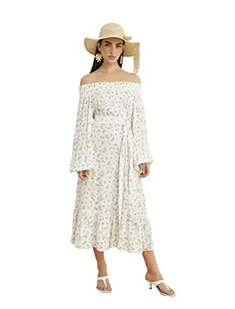 Koton Damska sukienka w kwiaty Midi Off The Shoulder Waistbanded, Green Design (7d5), 36