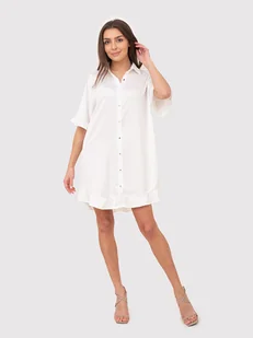 Kremowa sukienka koszulowa z falbanką i złotymi guzikami DA1774 CREAM
