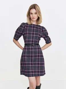 Sukienka damska Top Secret z krótkimi bufiastymi rękawami. Przepełniona niecodziennym wdziękiem oraz dużym komfortem podczas użytkowania sukienka damska o dopasowanym fasonie, która podkreśla smukłość kobiecej sylwetki. Posiada ona długość do połowy uda i jest delikatnie rozszerzana u dołu, a uroku dodają jej krótkie bufiaste rękawy. Została ona uszyta z przyjemnej w dotyku oraz dobrej gatunkowo dzianiny, wzbogaconej efektownym wzorem w kratę na całości oraz lekko owalnym dekoltem wraz z ozdobną lamówką wokół i zapięciem z tyłu na suwak. Może być ona z powodzeniem elementem zarówno stroju do pracy, jak i też na co dzień. Sukienka damska dostępna w kolorze fioletowym TSKW24SUK483545X00. Modelka ma 177 cm wzrostu i prezentuje rozmiar 34.