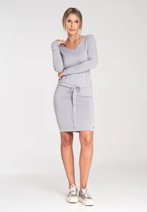 Krótka sukienka z wiązaniem w pasie z wiskozy - M1049 Ciemny Szary rozmiar S
