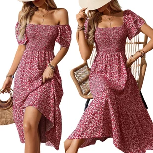 LETNIA SUKIENKA DAMSKA W KWIATY MIDI ZWIEWNA LUŹNA CZERWONA DŁUGA NA LATO