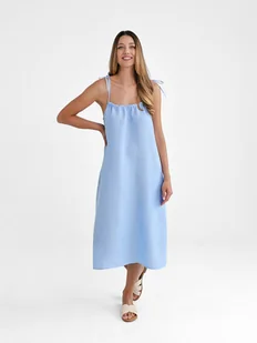 Lniana Sukienka FLORA MIDI blue sky