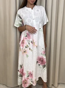 Lniana sukienka włoskiej produkcji w kwiaty. Zdobiona dodatkowo cekinami. Występuje w innych kolorach. Wymiary: Biust 120cm Długość 120cm Skład: 100% len ...