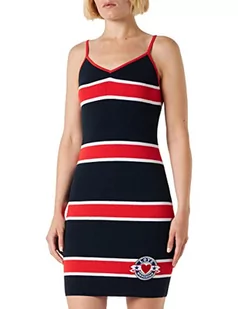 Love Moschino Damska sukienka Slim Fit Tank Striped Cotton Blend Rib, Blue White Red, 40