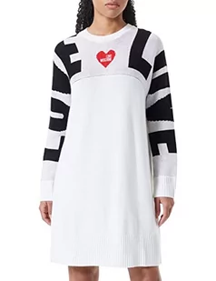 Love Moschino Damska sukienka z długim rękawem, żakardowa, Intarsia i Heart, z logo, haftowana sukienka, optical white, 40