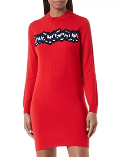 Love Moschino Damska sukienka z paskiem, żakardowa, Intarsia On The Front, czerwony, 40