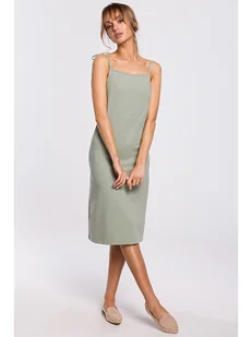 Sukienka w kolorze miętowym - dekolt: karo - ramiączka: wąskie - detale: ozdobne wiązanie - krój: luźny - look: jednokolorowy