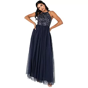 Maya Deluxe Damska sukienka maxi dla druhny wiązana na szyi cekiny zdobiona studniówka ukończenie szkoły ślub, granatowy, 42