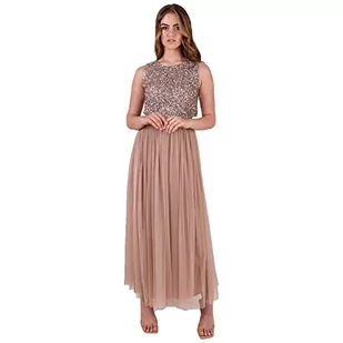 Maya Deluxe Damska sukienka Midaxi bez rękawów, cekiny, wysoka talia, tiulowa, zdobiona na wesele, bal, dla druhny, Szarobrązowy róż, 44