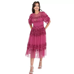 Maya Deluxe Damska sukienka Midi Ladies Sequin Embellished Short Sleeve Dress for Wedding Guest Bridesmaid Balowa Evening Occasion sukienka, Fuchsia, 50
