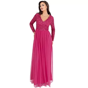 Maya Deluxe Damska Sukienka Rękaw Na Ślubny Goście V Neck High Empire Talii Maxi Długa Długość Wieczorna Bridesmaid Prom Sukienki, Fuschia, 46 Kobiet, Fuschia, 42
