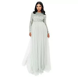 Maya Deluxe Maya zdobiona sukienka maxi z długim rękawem dla druhny, Zielona lilia, 50