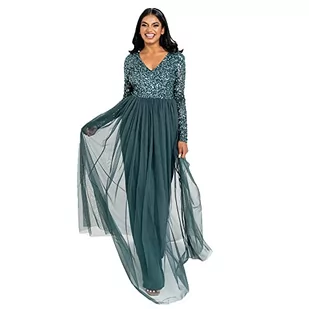 Maya Deluxe Womens Dress Sleeve For Wedding Guest V Neck High Empire Waist Maxi Long Length Evening Bridesmaid Prom Sukienka damska, Szmaragdowy Zielony, 26