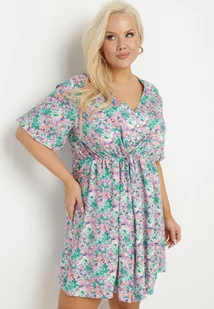 Miętowa Koszulowa Sukienka z Wiskozą Ozdobiona Wiązaniem Edirilira