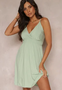 Sukienka Billil o lekko rozkloszowanym kroju, na cienkich, regulowanych ramiączkach. Wykonana z gładkiej, bawełnianej tkaniny. Dekolt kopertowy. Podkreśla atuty sylwetki - w pasie wszyte gumki, które po rozciągnięciu mierzą: S/M - 93 cm, M/L - 97 cm.