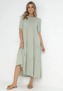 Sukienka Ulrika wykonana z gładkiej bawełny 100%. Długość maxi, o rozkloszowanym fasonie z falbankami. Góra z widocznym odcięciem w talii. Model bez podszewki. Okrągły, klasyczny dekolt.