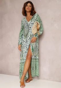 Udekorowana wzorem z motywem kwiatów i orientu. W zależności od cięcia, wzór materiału może się różnić. Kolorowa, pudełkowa sukienka od razu wyróżni Cię z tłumu. Dodaj do niej np. sandałki z cienkimi paseczkami.