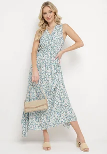 Eccru Długa Letnia Sukienka w Kwiatki wiązana na Karku