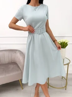 Jednolita sukienka z paskiem, która świetnie sprawdzi się w wielu codziennych stylizacjach. Przyjemny,średniej grubości materiał zapewni wygodę i komfort noszenia. Produkt posiada klasyczny, okrągły dekolt orazkrótkie rękawki. Jednolita kolorystyka sukienki dodaje jej subtelnej elegancji. Idealna propozycja na co dzień, do pracy jak ina okazjonalne wyjście.