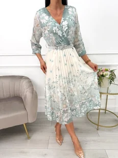 Sukienka z plisowanym dołem i motywem kwiatowym to elegancka propozycja. Plisowany dół dodaje lekkości i zwiewności, a motyw kwiatowy dodaje wyrazistości. Rękawy 3/4 sprawiają, że sukienka jest idealna na różne okazje. Zakładany, kopertowy dekolt podkreśla biust oraz wysmukla szyję. Gumka w talii oraz dołączony pasek pozwalają na idealne dopasowanie do figury.