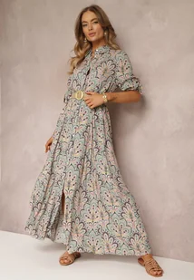 Miętowo-Różowa Koszulowa Sukienka z Dodatkowym Paskiem i Podpinanymi Rękawami Alonie - Renee