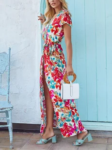 Milan Kiss Sukienka w kolorze kremowo-czerwono-turkusowym